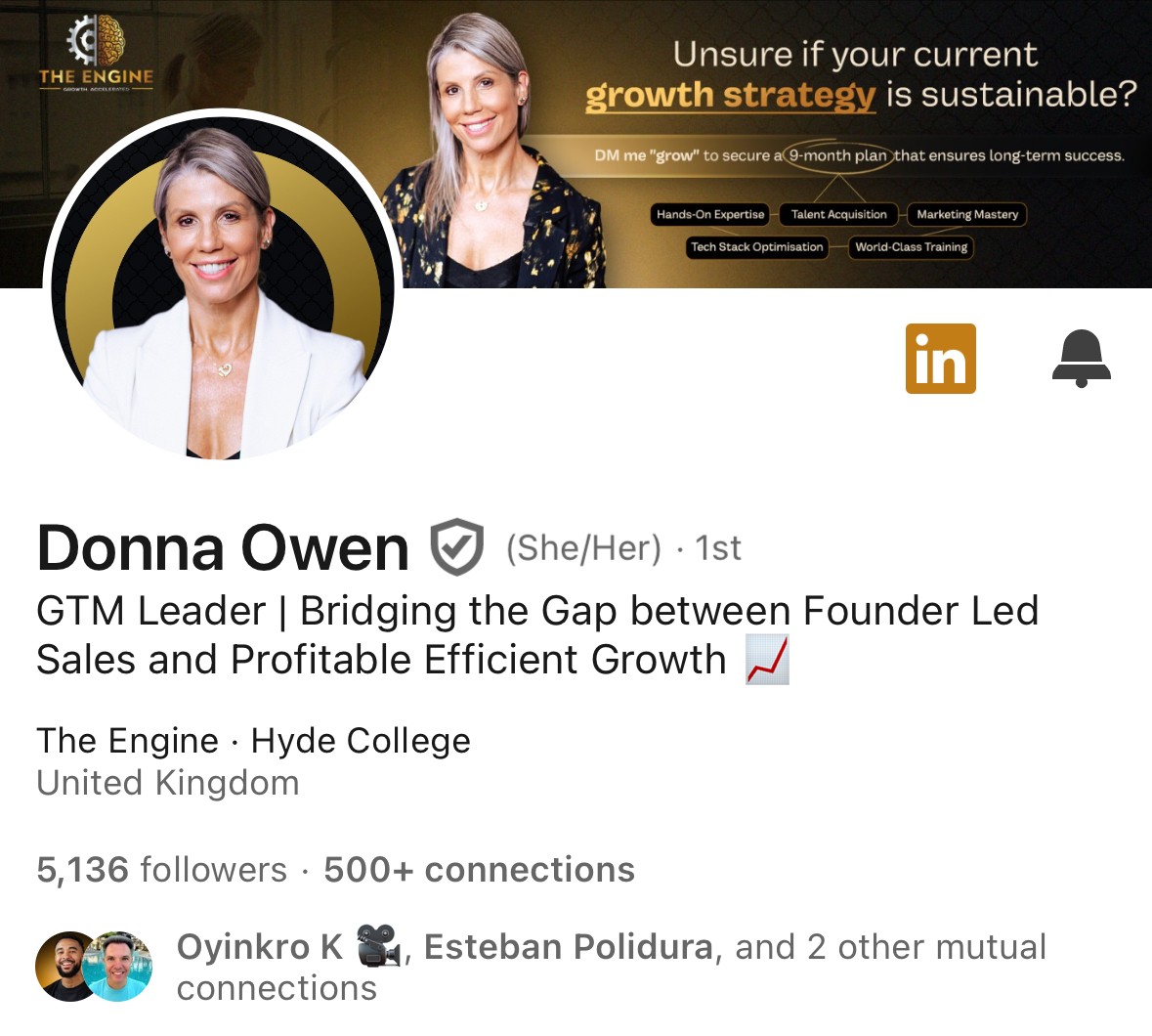 - Donna Owen (7-figure business owner/Founder @ The Engine - Sales & Marketing)