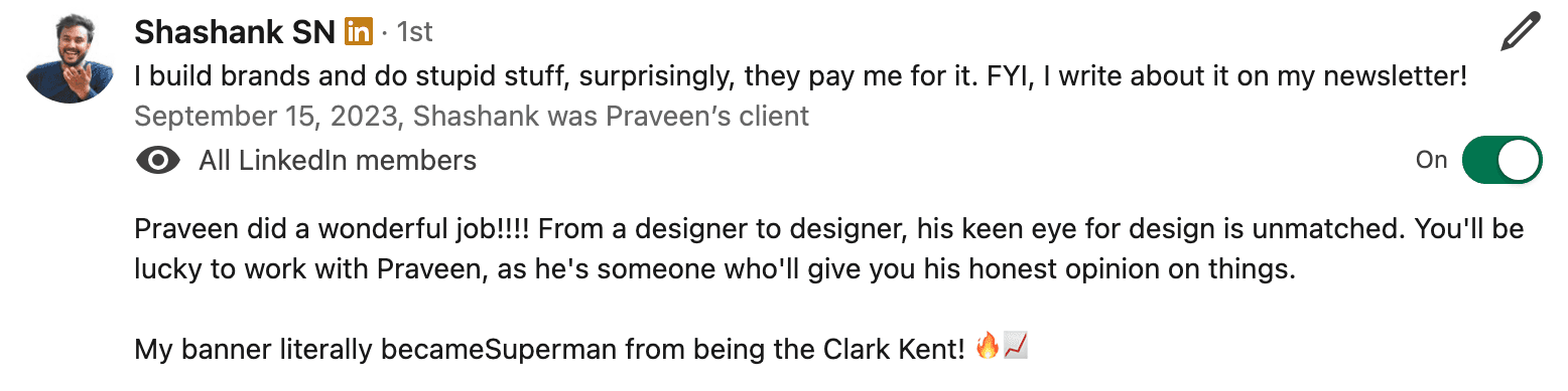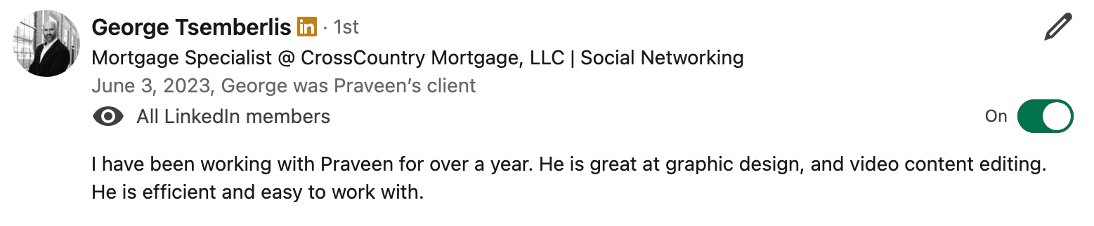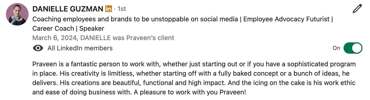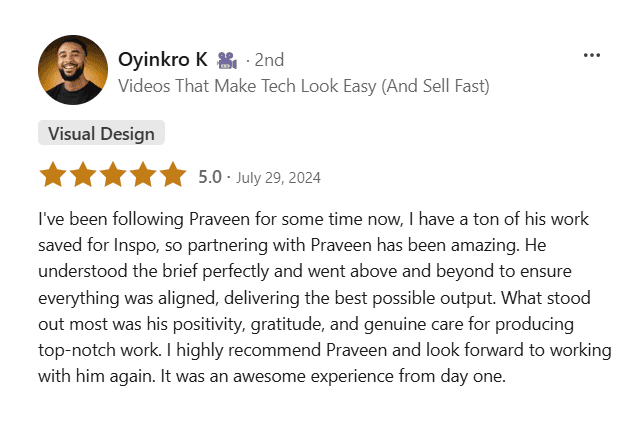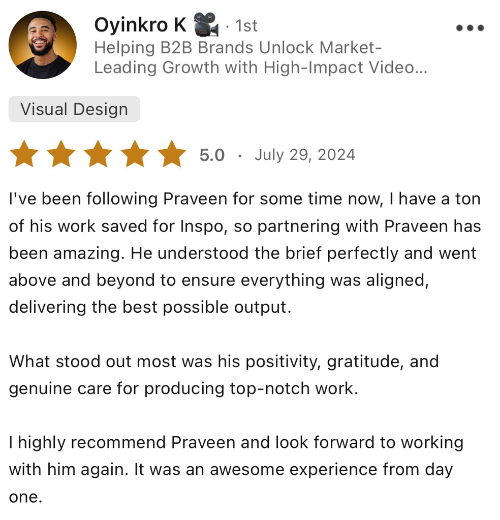 “I’ve been working with Praveen for five years now - he’s truly a master of design and content creation.”